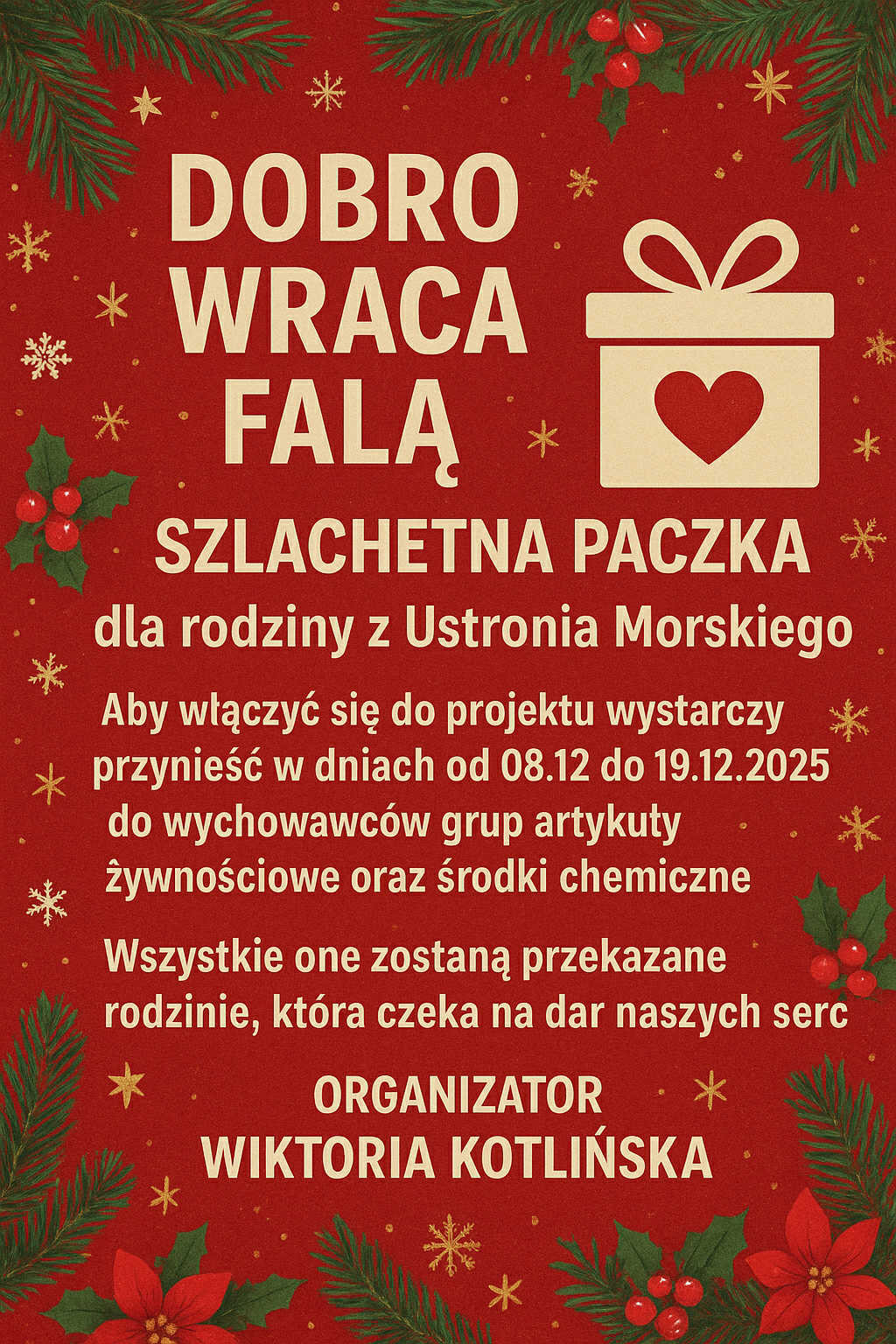 2025-12-08Serdecznie zapraszamy do włączenia się w akcję Szlachetna Paczka Link do wydarzenia na profilu Przedszkola w serwisie Facebook