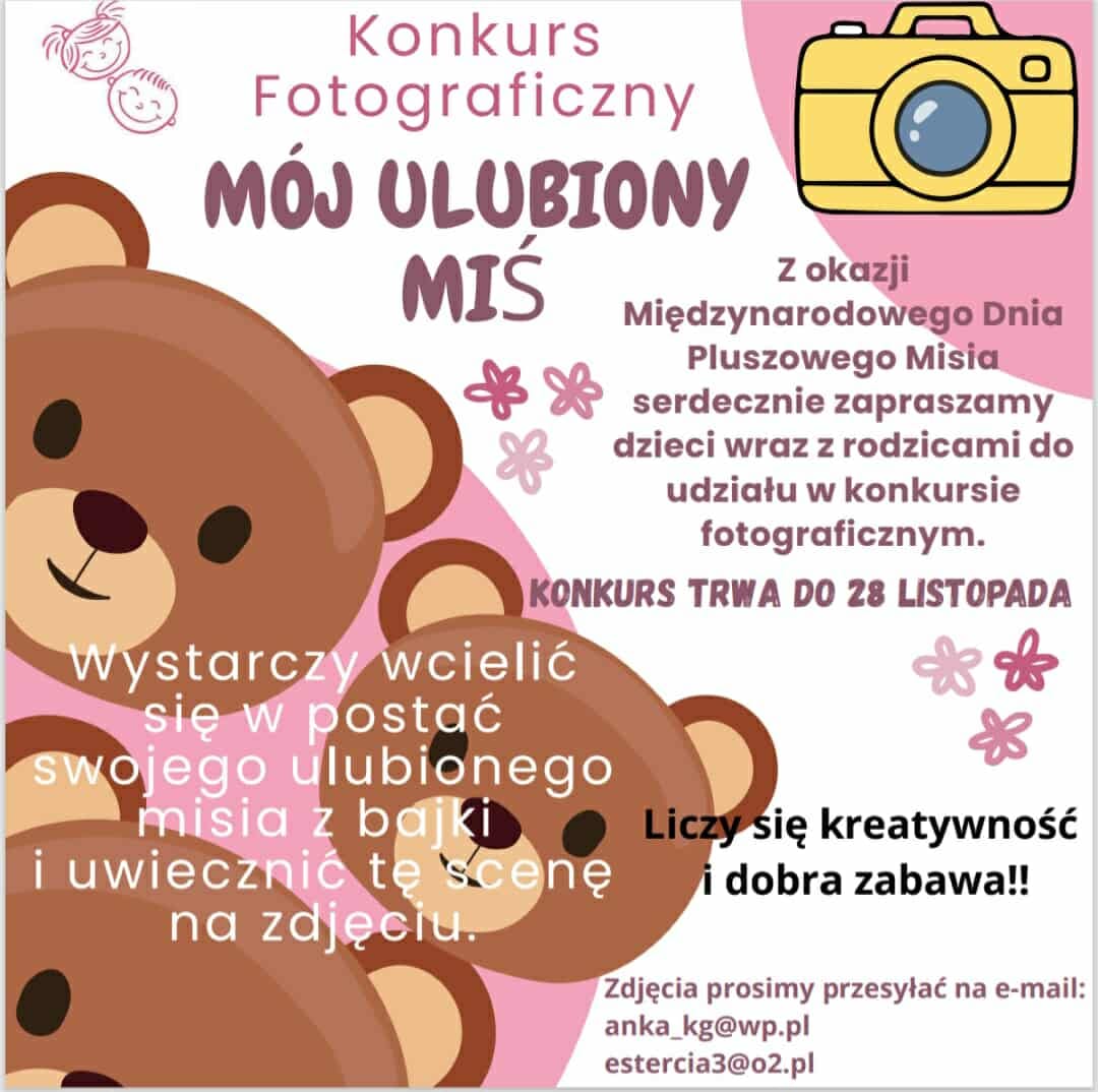 Serdecznie zapraszamy do udziału w konkursie fotograficznym "MÓJ UKUBIONY MIŚ"